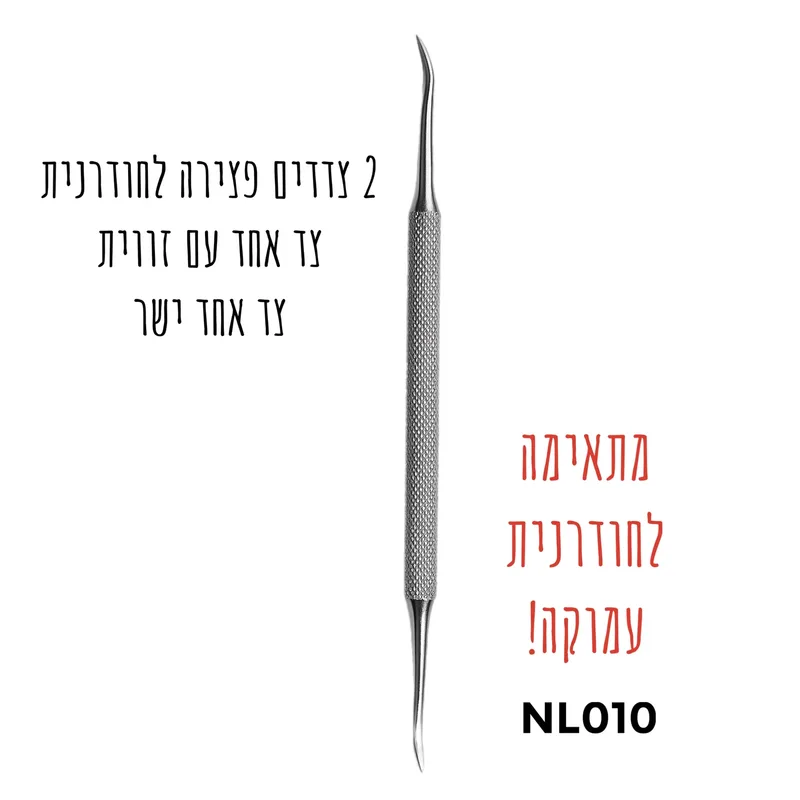 עיצוב דו-צדדי של פצירה - צד אחד ישר וצד שני זווית לטיפול בציפורן חודרנית עמוקה.