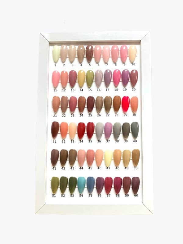 - 60 גוונים ייחודיים של לק ג'ל, כל אחד מהם עם פיגמנט חזק במיוחד המעניק צבע אינטנסיבי ובוהק.