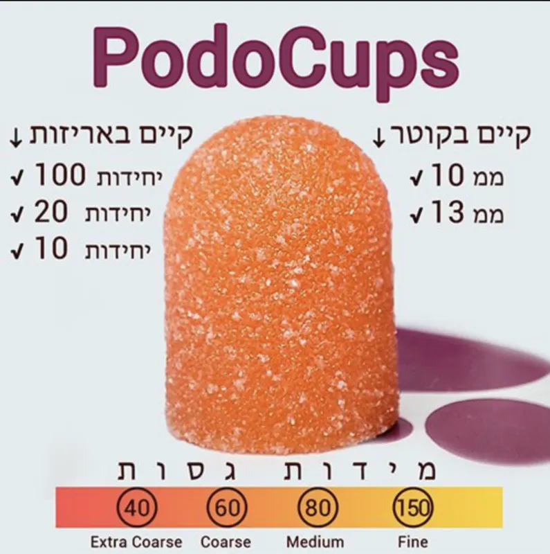 מארז 10 יח’ – ראש שיוף לפדיקור 13 מ”מ | גסות 80 מדיום – PodoCups