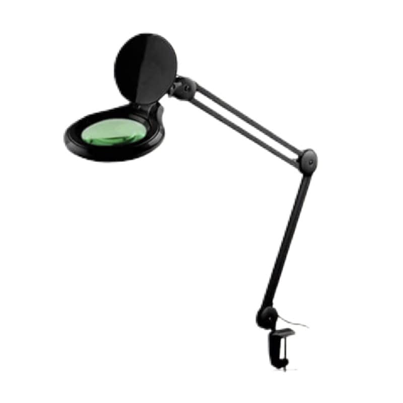 לופה לד LED בעלת 90 נורות לד לבנות בקוטר 5 אינץ מגדילה פי 3 לטיפולי קוסמטיקה המונחת על עגלת הטיפולים (מגיעה גם עם תפס לשולחן)