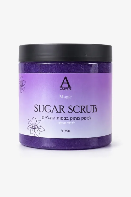 פילינג הסוכר של AMOUR בניחוח לבנדר סחלב מעניק לעור חוויית טיפוח עמוקה ומפנקת.
